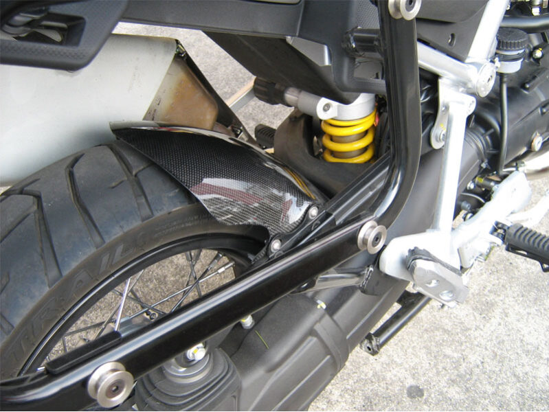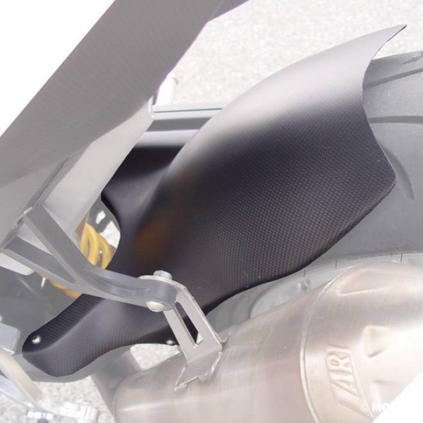 Parafango posteriore a “unghia” in fibra di carbonio trasparente opaco, conferisce equilibrio estetico al posteriore.